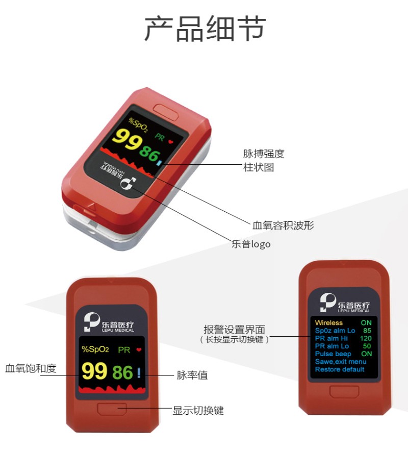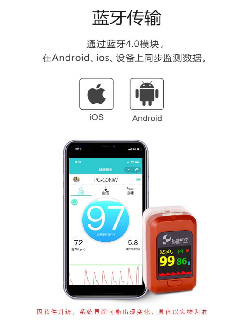 樂普藍牙血氧儀 脈搏血氧儀 血氧檢測儀 PC-60NW產(chǎn)品說明: