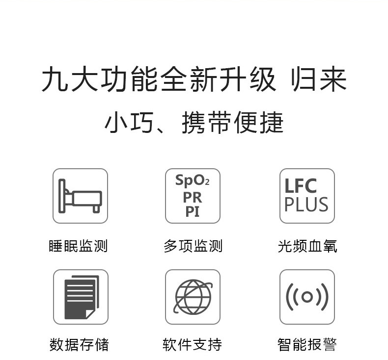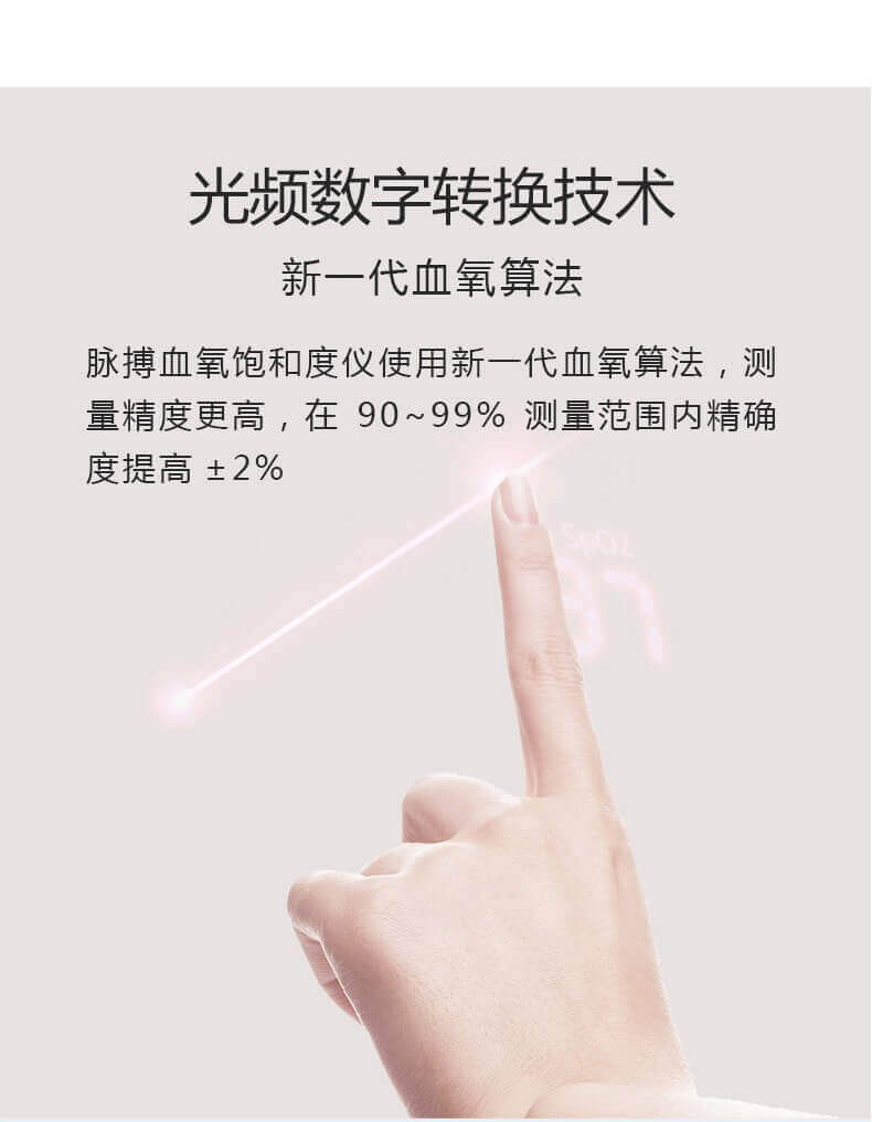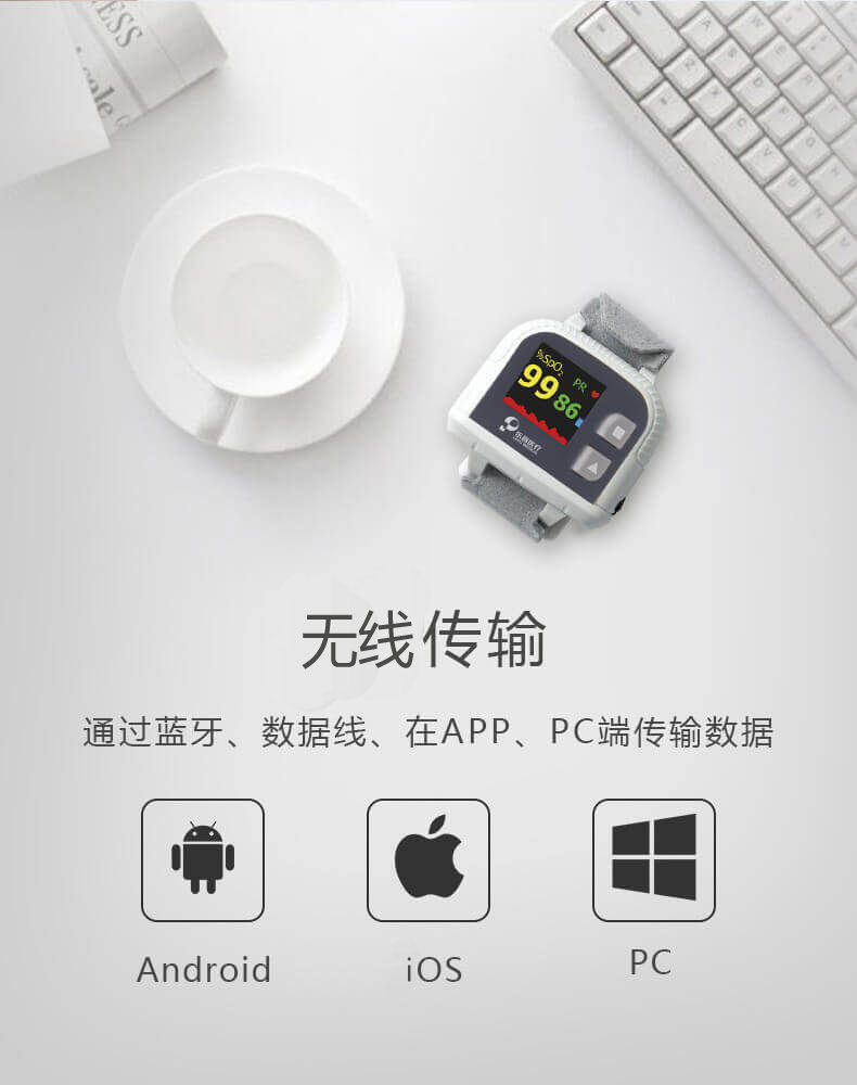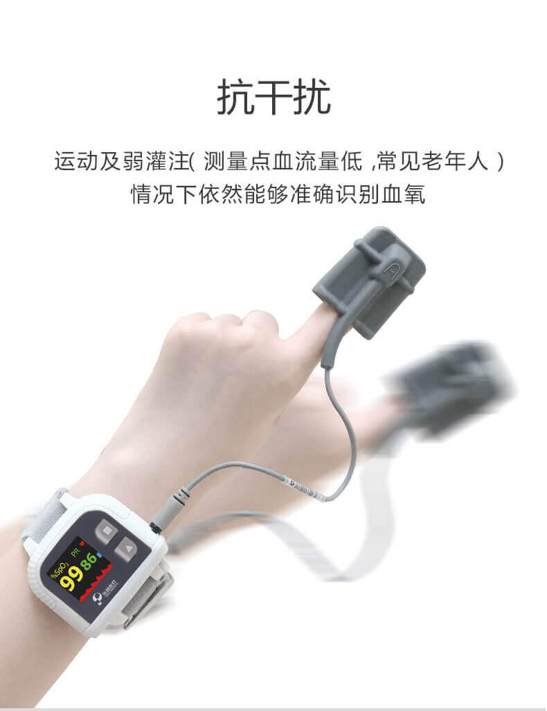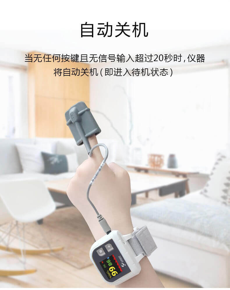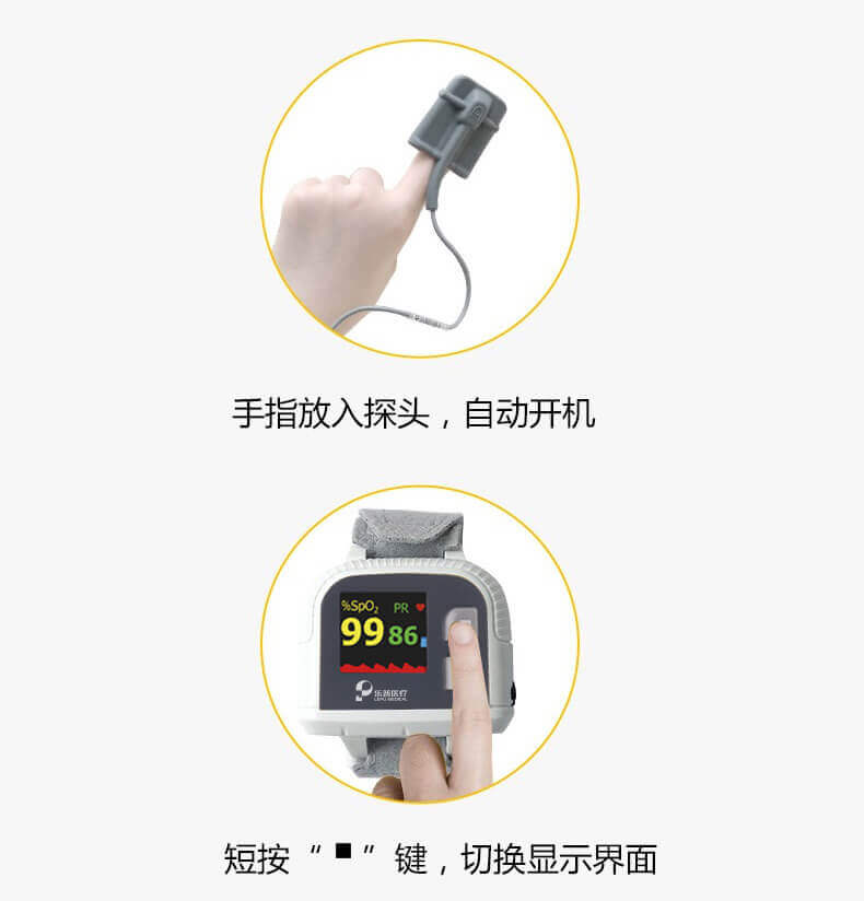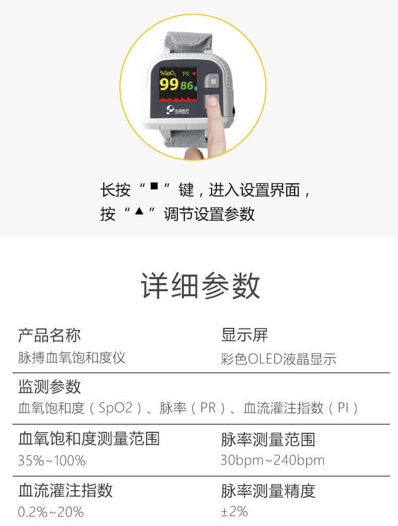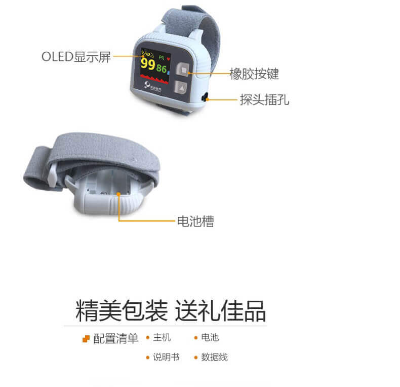彩色OLED顯示數(shù)據(jù),也可顯示 脈搏強(qiáng)度柱狀圖 和 光容積波形