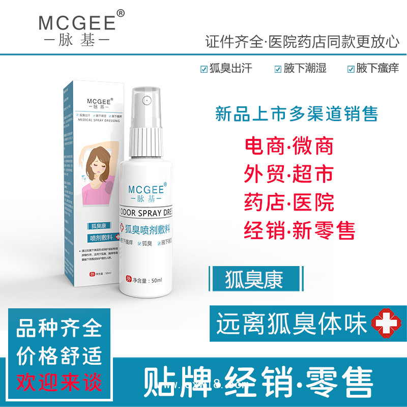 將腋下部位皮膚清洗干凈,將噴劑敷料噴在腋下部位,可根據(jù)狐臭程度確定噴灑次數(shù)。