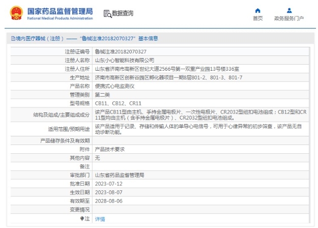 批準(zhǔn)文號(hào):魯械注準(zhǔn)20182070327