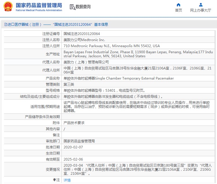 美敦力單腔體外臨時(shí)起搏器產(chǎn)品說(shuō)明: