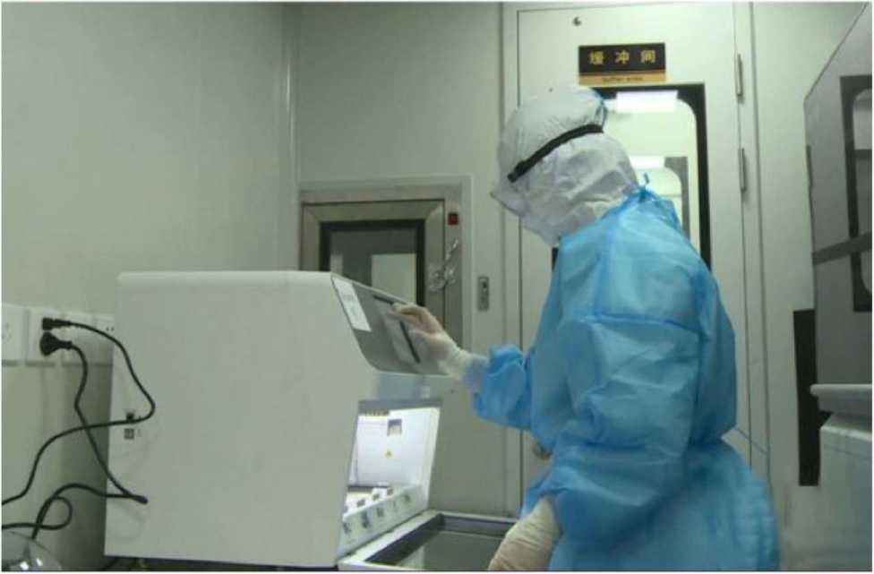 新冠樣品可直接使用標本制備區(qū)內(nèi)的對外傳遞窗進行樣品接收。接收到樣本后,將標本轉(zhuǎn)運容器放入生物安全柜,在安全柜中打開標本轉(zhuǎn)運容器并清點樣本。