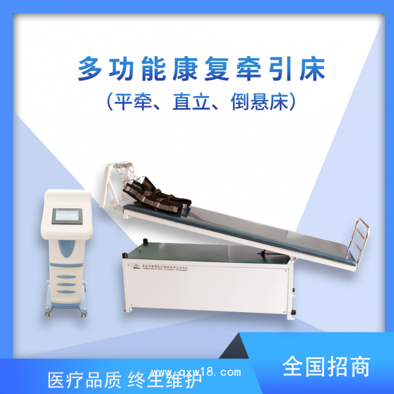 多功能康復(fù)牽引床是一種既能平行牽引,又能斜位牽引,且能懸梁倒掛;既能電動,又能微電腦控制進行治療的康復(fù)設(shè)備,廣泛適用于康復(fù)科、理療科、骨傷科等。