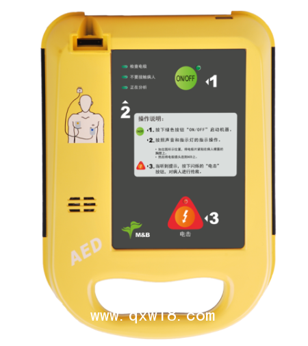 步按下綠色按鈕:第二步根據(jù)語(yǔ)音提示貼放電極片:第三步根據(jù)語(yǔ)音提示按下紅色按鈕。選配件:AED放置箱、AED放置柜、AED放置包、電池、電極片。 AED7000自動(dòng)體外除顫儀
