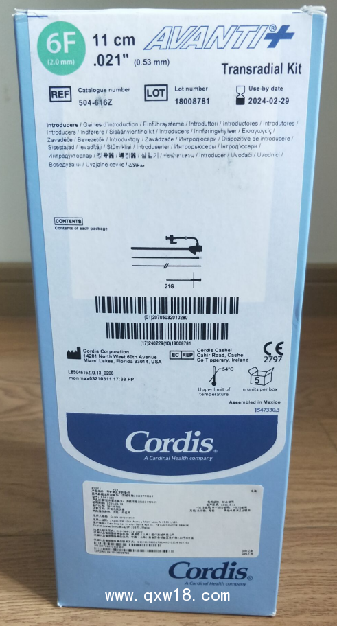 強(qiáng)生Cordis導(dǎo)管鞘及穿刺套件橈動(dòng)脈鞘504-616Z產(chǎn)品說(shuō)明: