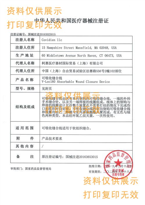 結(jié)構(gòu)與組成:可吸收縫合線由具有單向倒鉤的可吸收縫合線,一端的外科手術(shù)縫合針,以及另一端焊接的線圈組成。線體上的倒鉤與焊接的線圈設(shè)計(jì)允許整個(gè)裝置在不需要打結(jié)的情況下完成傷口的組織對合處理。可吸收縫合線的單向倒鉤可吸收縫合線和線圈均由乙二醇酸與亞丙基碳酸酯共聚而成,有無色與綠色兩種類型。本品經(jīng)環(huán)氧乙烷滅菌,一次性使用