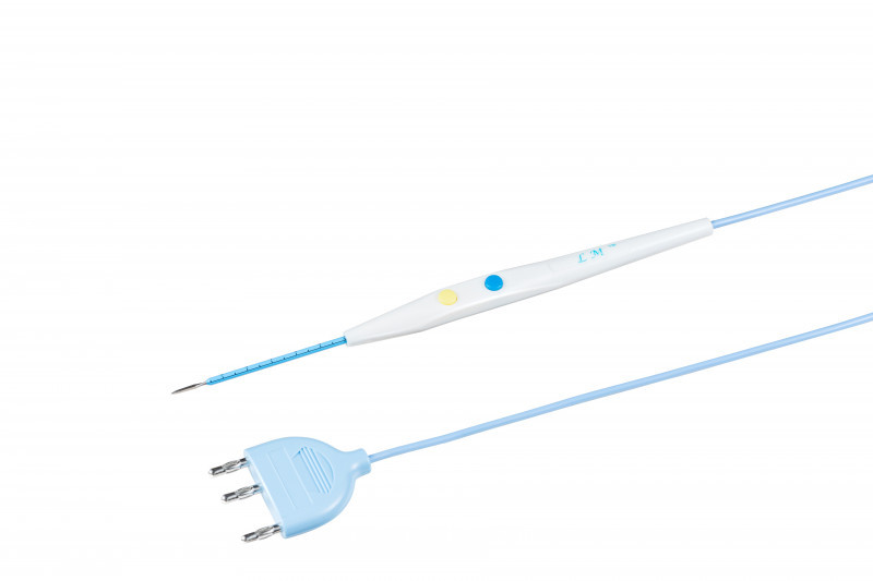 多功能手術(shù)解剖器是高頻電刀主機(jī)上的一個(gè)附件,高頻電刀利用高頻電流通過組織時(shí)產(chǎn)生的熱效應(yīng)進(jìn)行切割和凝血。工作電極越細(xì),電流越集中,例如針狀電極可在更低的功率設(shè)定達(dá)到所需的切割效果。