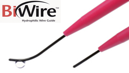 BiWire導(dǎo)絲可為建立輸尿管操作通道提供兩種選擇,其兩端均為軟頭(一端直頭、一端彎頭),任何一端均可作為導(dǎo)引端通過扭曲的輸尿管,BiWire這種二合一的特性可降低庫(kù)存需求。鎳鈦合金芯在極度彎曲時(shí)也不會(huì)發(fā)生扭折,1比1扭矩控制使導(dǎo)絲可通過挑戰(zhàn)性部位。AQ涂層為親水性聚合物超薄涂層,激活后能吸附并保存水分和其它液體,推進(jìn)時(shí)表面摩擦阻力低,易于推進(jìn)。