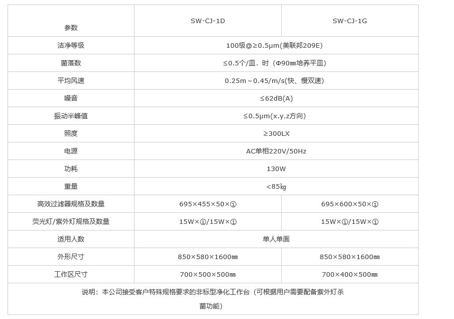 SW-CJ-1D(1G)凈化工作臺產(chǎn)品說明:
