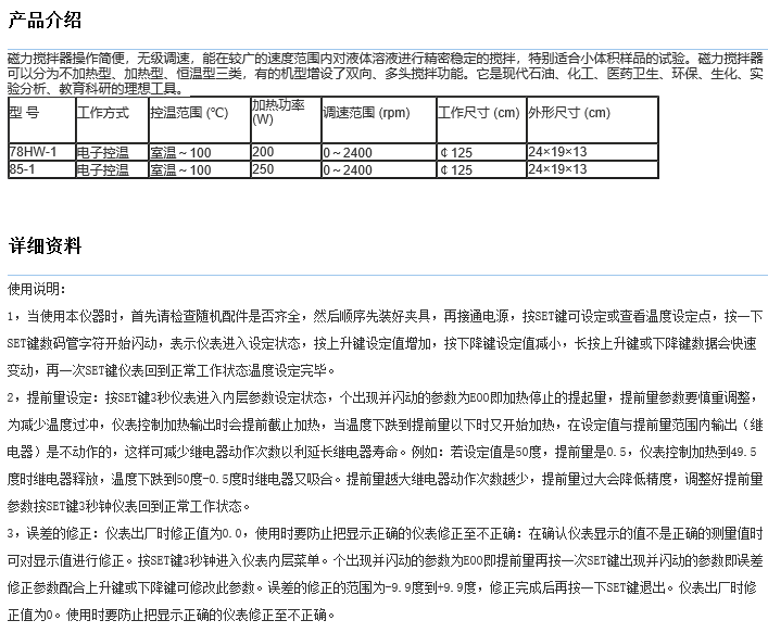 78HW-1恒溫磁力攪拌器產(chǎn)品說(shuō)明: