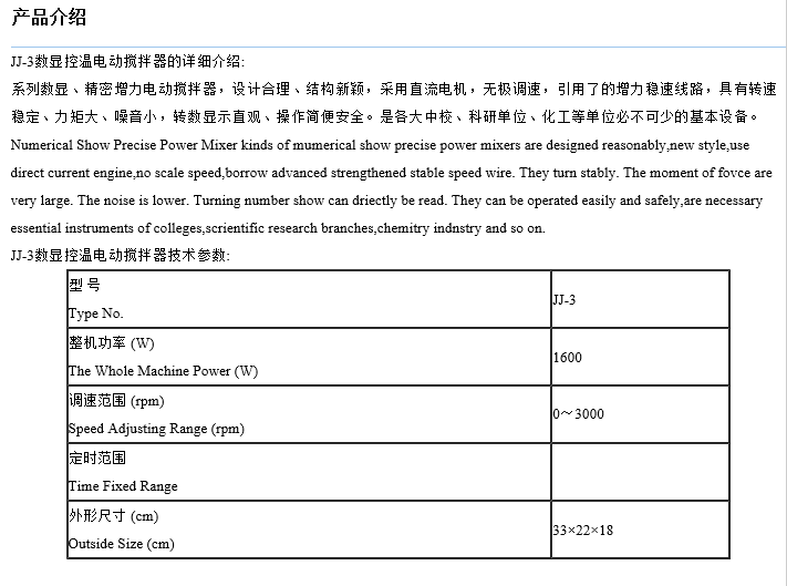 JJ-3控溫電動攪拌器產(chǎn)品說明: