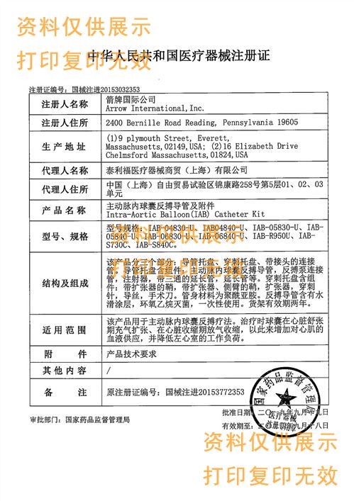 名稱:主動脈內(nèi)球囊反搏導(dǎo)管及附件