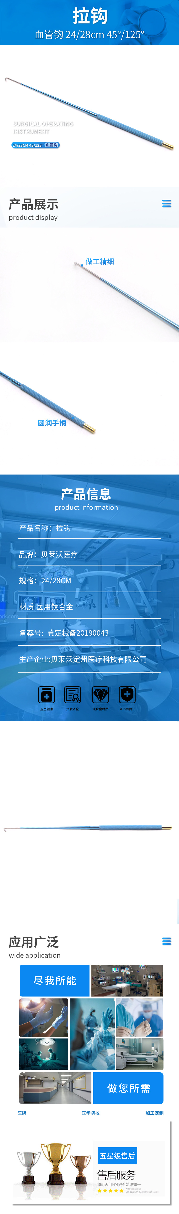 心胸外科拉鉤 血管鉤 優(yōu)質(zhì)鈦合金拉鉤 手術(shù)鉤 醫(yī)用拉鉤貝萊沃產(chǎn)品說明: