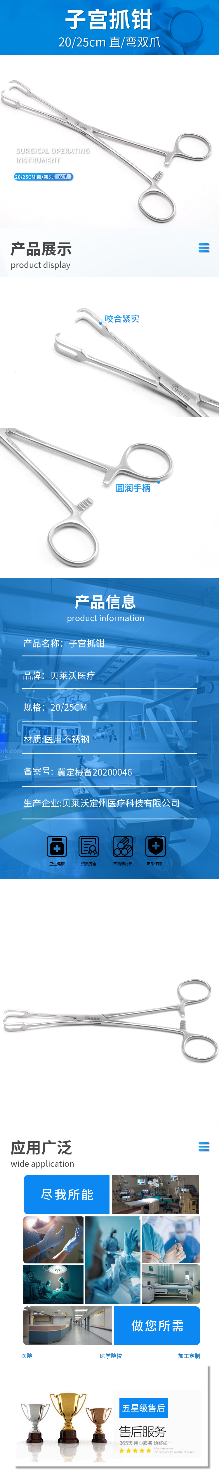 婦產(chǎn)科子宮抓鉗 經(jīng)陰道子宮切除器械包子宮抓鉗 不銹鋼子宮抓鉗產(chǎn)品說(shuō)明: