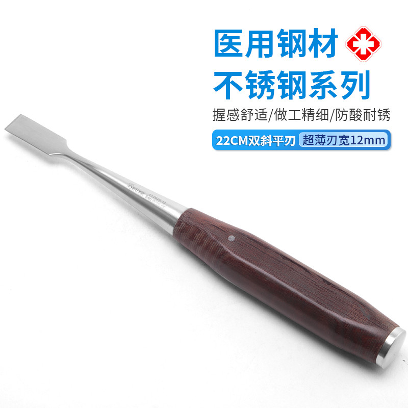 骨科骨鑿 醫(yī)用骨鑿 德國(guó)不銹鋼雙斜平刃骨鑿 超薄刃膠木柄骨鑿產(chǎn)品說(shuō)明:
