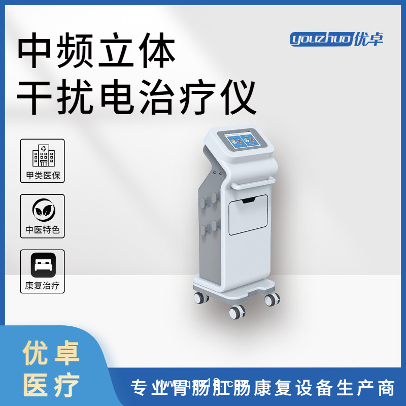立體干擾電療法是在傳統(tǒng)干擾電法和動態(tài)干擾電療法的基礎(chǔ)上進(jìn)一步發(fā)展起來的。治療時將兩組及以上不同頻率電流交叉輸入人體,在體內(nèi)互相干擾產(chǎn)生差頻電流,可以起到鎮(zhèn)痛、興奮神經(jīng)肌肉組織、促進(jìn)局部血液和淋巴循環(huán)、松懈黏連、提高平滑肌力等作用。同時對電流進(jìn)行低頻幅度調(diào)制,從而獲得多部位、不同方向、角度和形狀的動態(tài)刺激效應(yīng)。