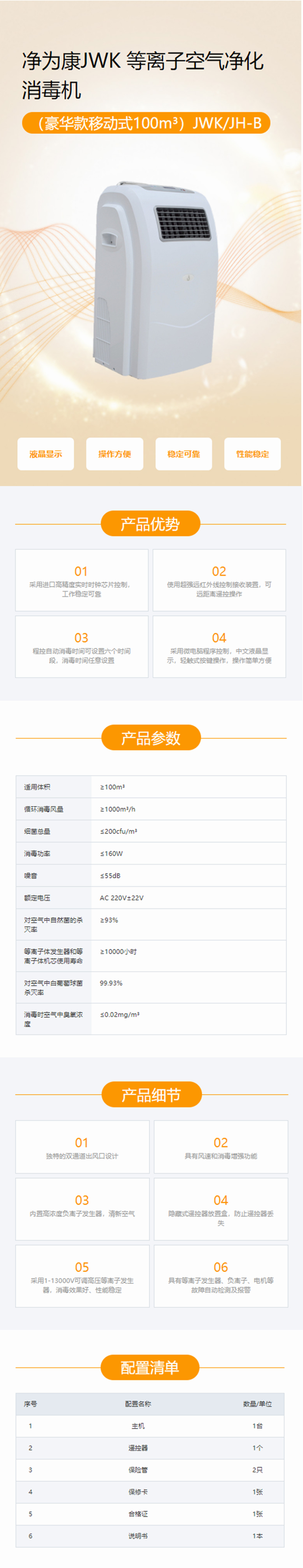 凈為康 JWK 等離子空氣 凈化消毒機(jī)JWK/JH-B產(chǎn)品說(shuō)明: