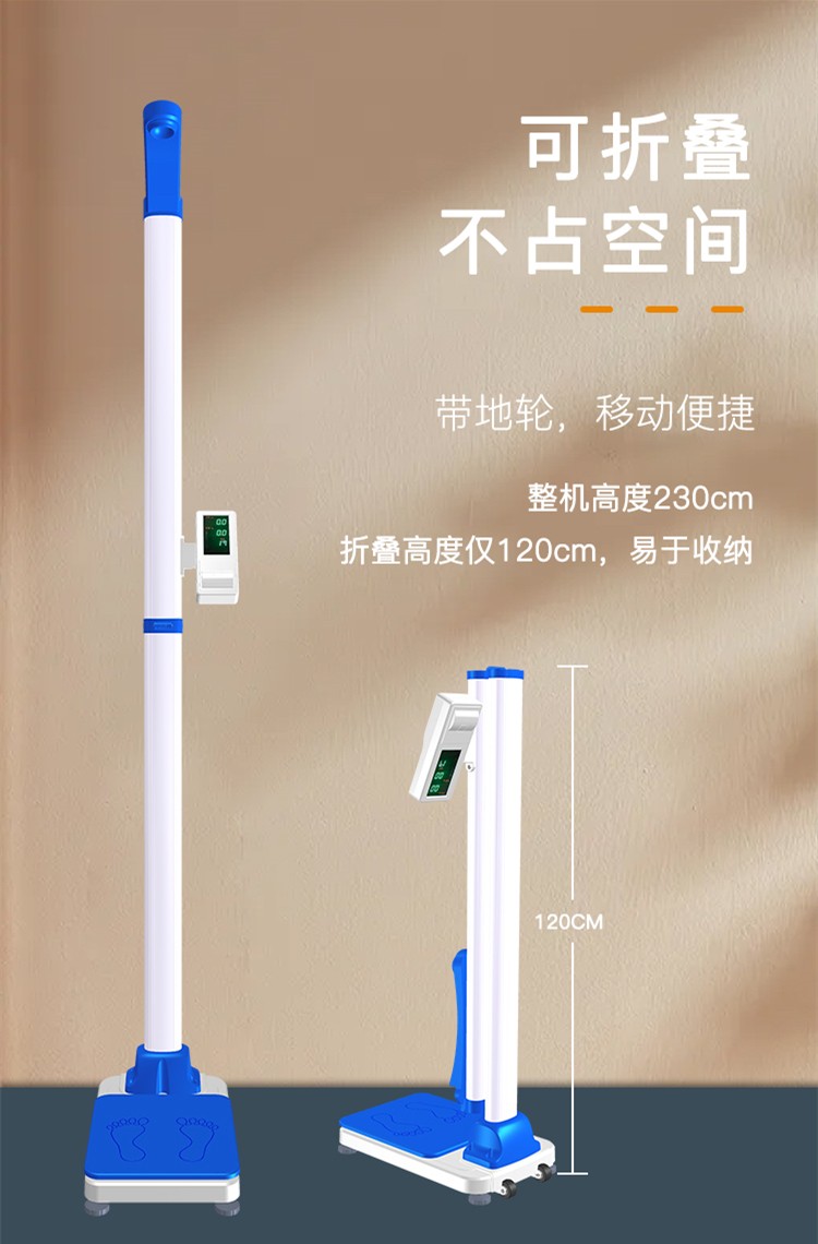 DHM-30D型全自動(dòng)身高體重秤采用微電腦控制,可自動(dòng)測(cè)量身高、體重、BMI,測(cè)量結(jié)果采用數(shù)碼屏顯示并語(yǔ)音播報(bào),打印測(cè)量結(jié)果;機(jī)身輕巧,可折疊,帶地輪,移動(dòng)方便,折疊后高度120cm。先進(jìn)的超聲波測(cè)高,精密傳感器測(cè)重,使測(cè)量更準(zhǔn)確??膳c計(jì)算機(jī)連接(標(biāo)配USB連接,選配無(wú)線藍(lán)牙,WIFI等),以備存檔;本機(jī)機(jī)身輕巧,使用方便,測(cè)量高效,是醫(yī)院、藥房、診所、學(xué)校、商超、幼兒園、健身場(chǎng)所、社區(qū)服務(wù)中心、體檢中心、健康小屋項(xiàng)目和政府事業(yè)單位等部門(mén)和單位的理想選擇。