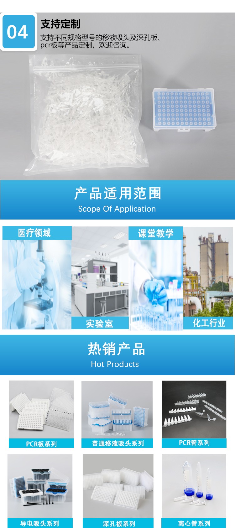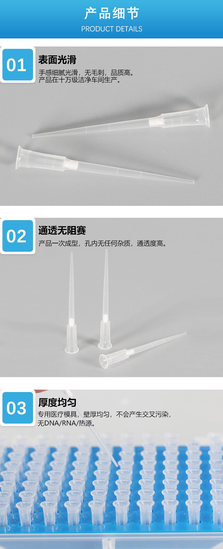 廠家供應(yīng)實(shí)驗(yàn)室耗材一次性移液吸頭 移液濾芯吸頭10ul產(chǎn)品說(shuō)明: