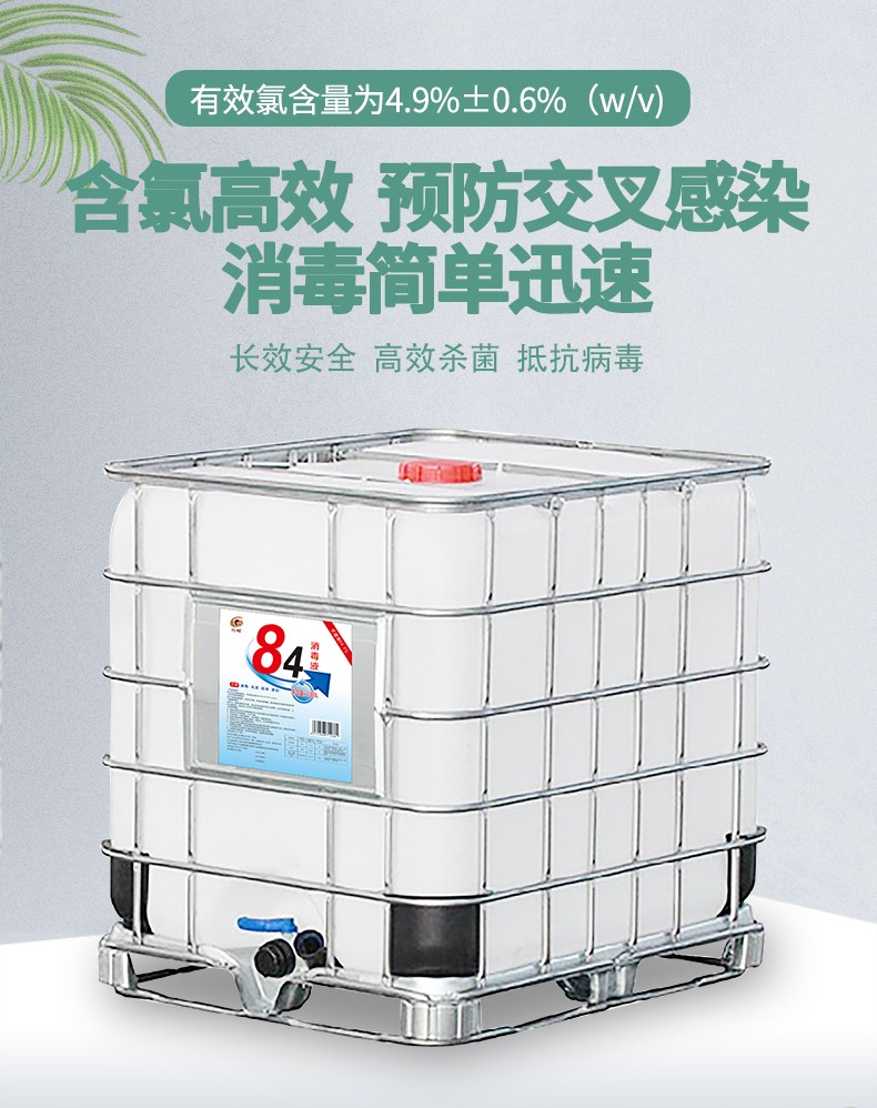 廠家直銷84消毒液噸桶1000L工廠學(xué)校大空間消毒產(chǎn)品說明: