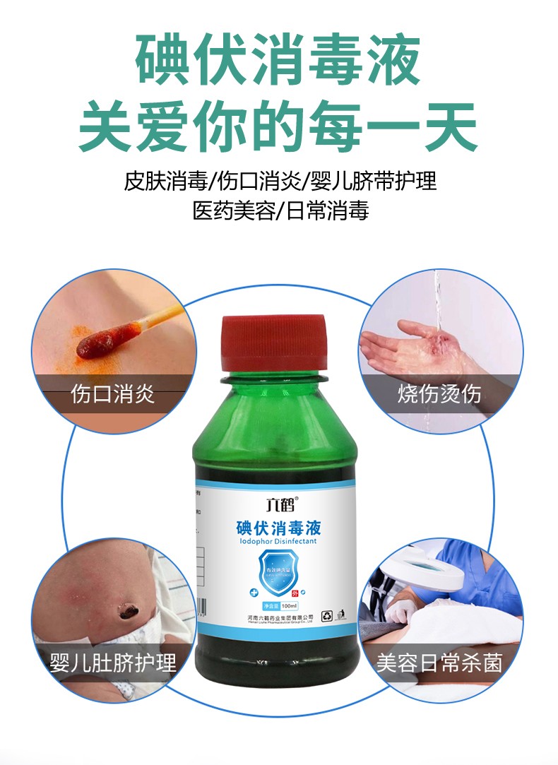 六鶴碘伏消毒液100ml皮膚傷口消毒水便攜式廠家批發(fā)產(chǎn)品說(shuō)明: