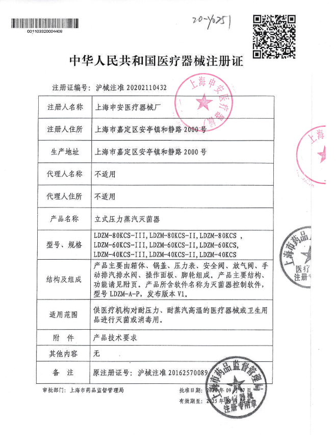 | 注冊證號/備案憑證號: | 滬械注準(zhǔn)20202110432 |