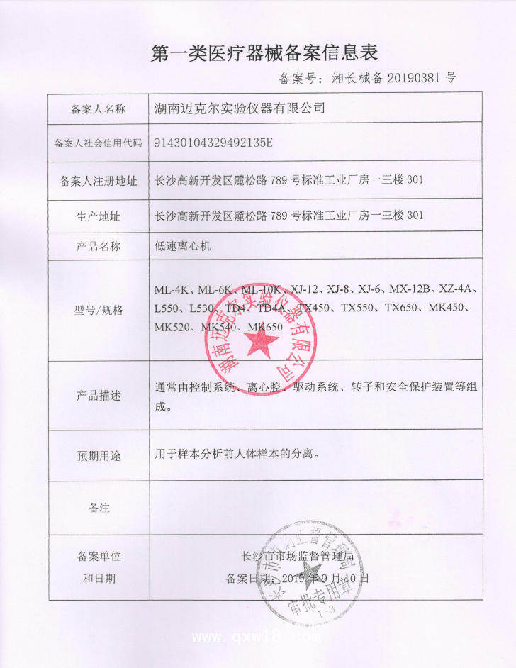 備案憑證號(hào):湘長(zhǎng)械備20190381號(hào)