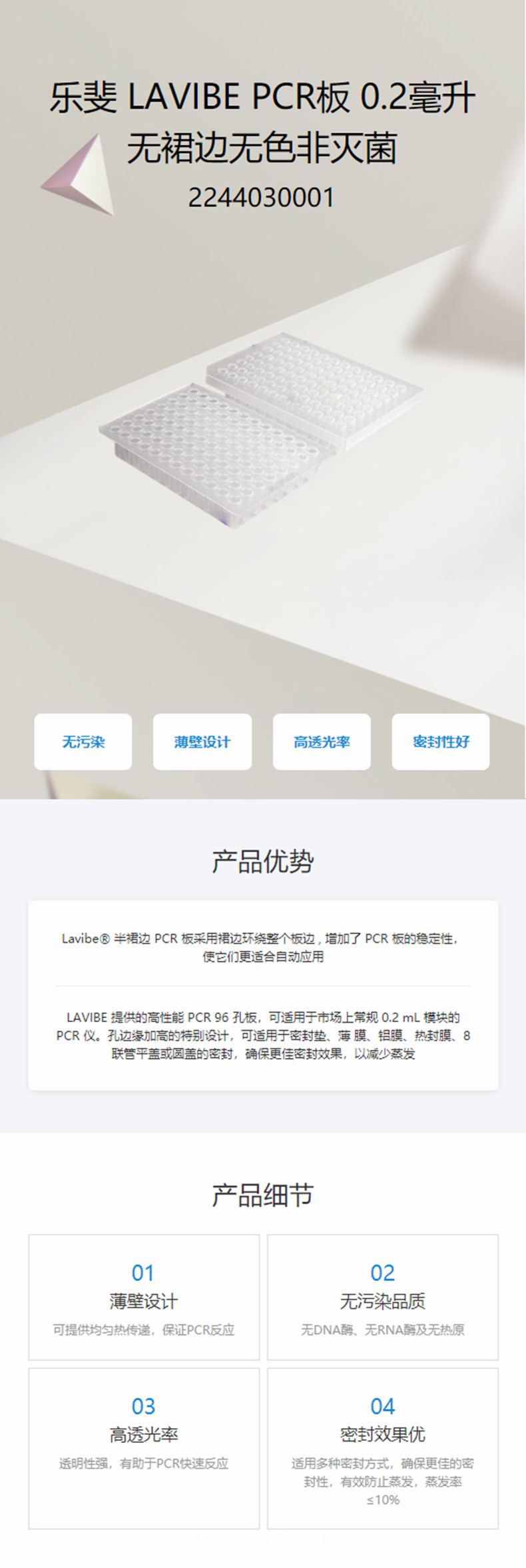 樂(lè)斐LAVIBE-PCR板0.2毫升無(wú)裙邊無(wú)色非滅菌產(chǎn)品說(shuō)明: