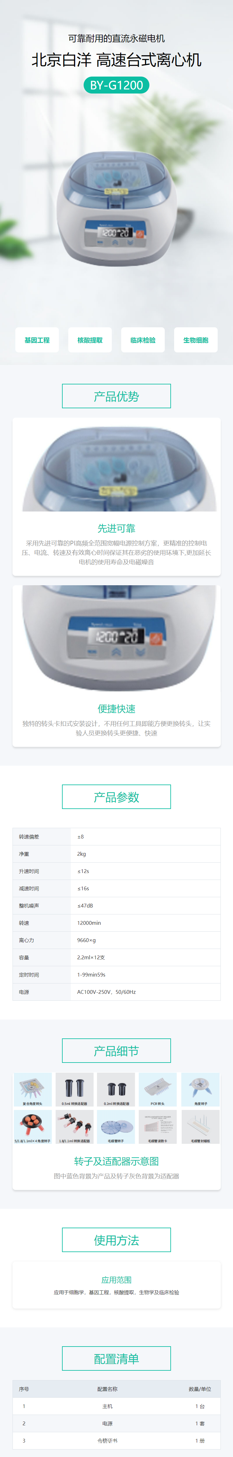 北京白洋-高速臺式離心機BY-G1200調(diào)速版-科研實驗室用產(chǎn)品說明: