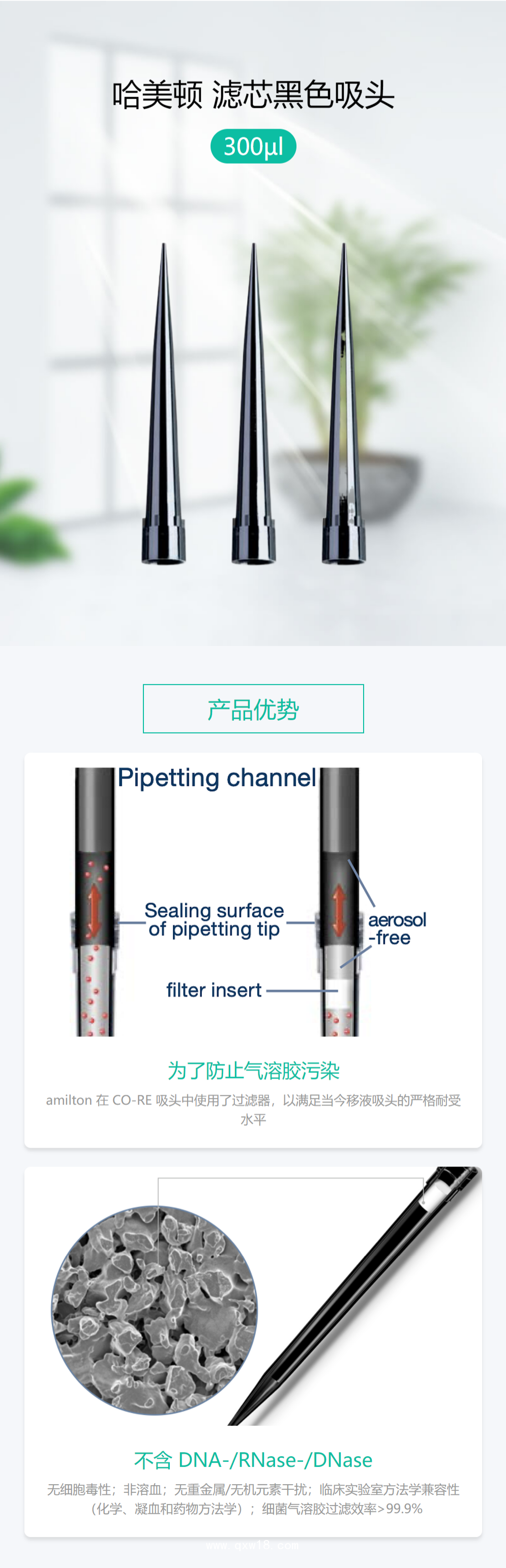 哈美頓濾芯黑色吸頭?300ul5760個-箱移液器移液槍配件產(chǎn)品說明: