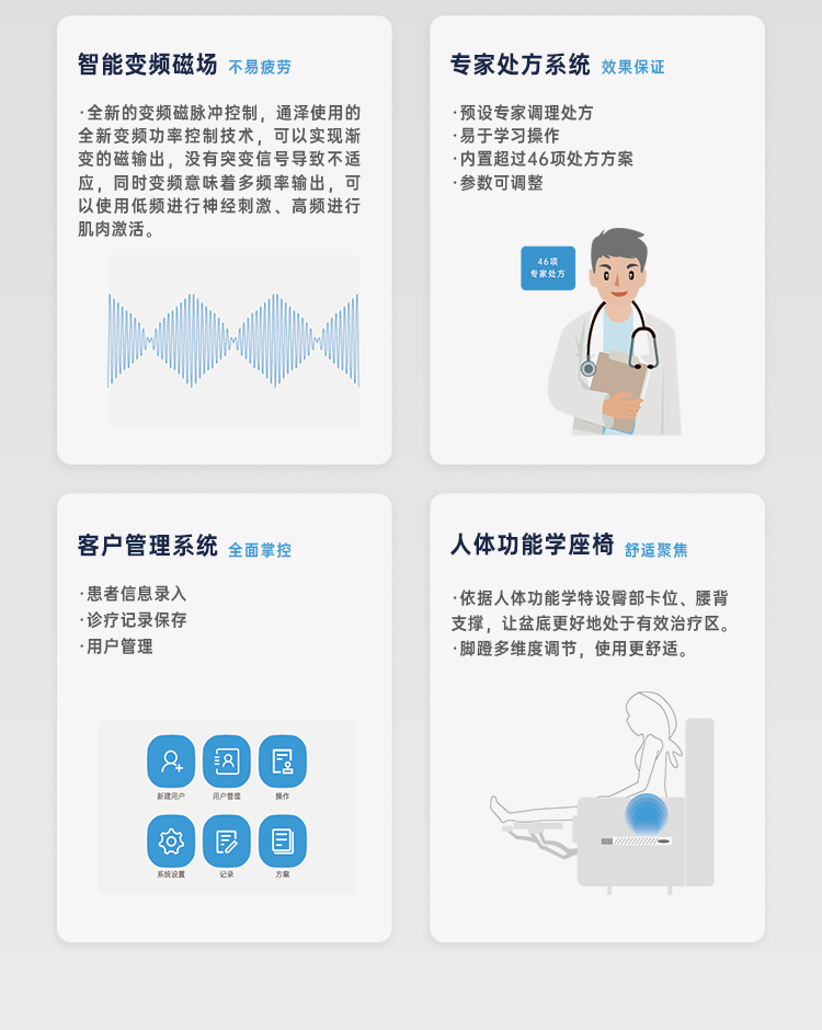 盆底肌磁療椅的廠家 盆底磁刺激儀功能全 脈沖磁產(chǎn)后訓(xùn)練儀產(chǎn)品說(shuō)明: