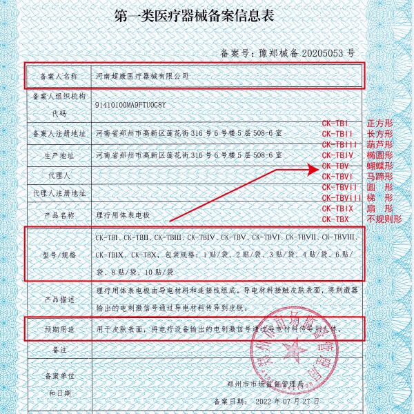 用途:使用時(shí),貼附在治療部位。配合中低頻、干擾電、中醫(yī)定向透藥治療儀、超聲藥物導(dǎo)入儀、電針治療儀等電療設(shè)備,將電療設(shè)備輸出的電刺激信號(hào)傳導(dǎo)到人體進(jìn)行治療。