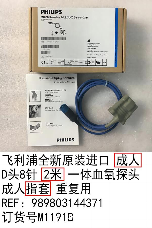飛利浦全新原裝進口 成人D頭8針 2米 一體血氧探頭 成人指套 重復(fù)用 REF:989803144371 訂貨號M1191B
