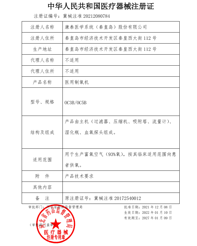 康泰 OC5B 醫(yī)用制氧機(jī)產(chǎn)品說明: