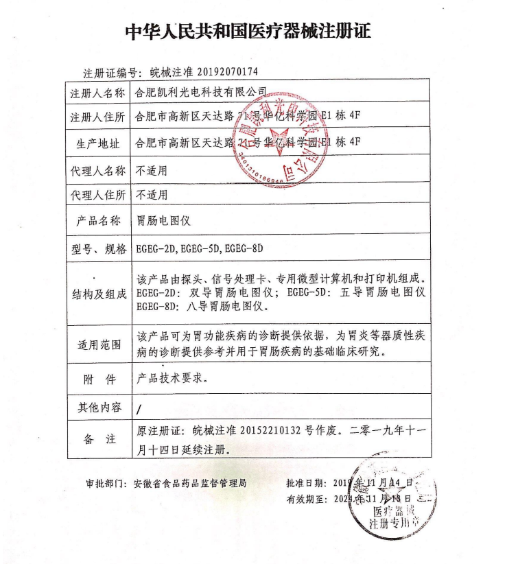 適用范圍該產(chǎn)品可為胃功能疾病的診斷提供依據(jù),為胃炎等器質(zhì)性疾病的診斷提供參考并用于胃腸疾病的基礎(chǔ)臨床研究。 原注冊證:皖械注準(zhǔn)20152210132號(hào)作廢。二零一九年十一月十四日延續(xù)注冊。?