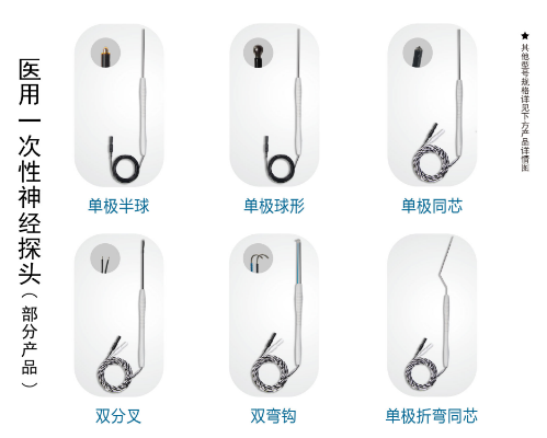 海臻-醫(yī)用一次性神經(jīng)探頭/雙彎鉤/雙分叉/單極平頭/雙極彎鉤/雙極雙球/三彎鉤/單極半球/單極球形/單極同芯/產(chǎn)品說明: