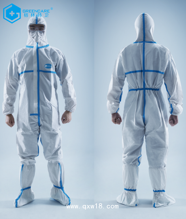 產(chǎn)品結(jié)構(gòu)和組成:由覆膜無紡布、膠條制成,由連帽上衣、褲子組成,為連身式結(jié)構(gòu)。經(jīng)環(huán)氧乙烷滅菌,應無菌。