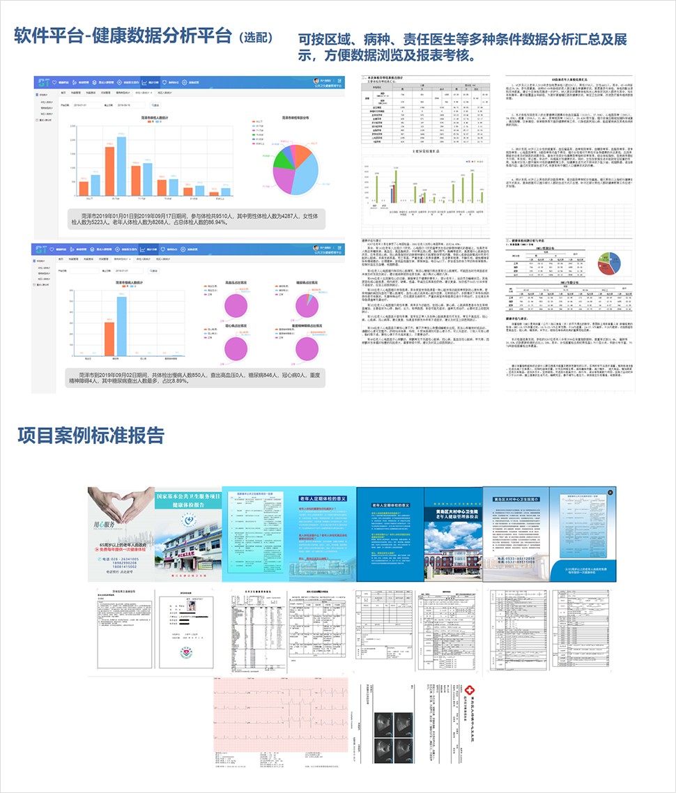 產(chǎn)品配置:血生化分析、尿液分析、血壓測(cè)量、血液分析、 心電圖、B超、身高體重等。
