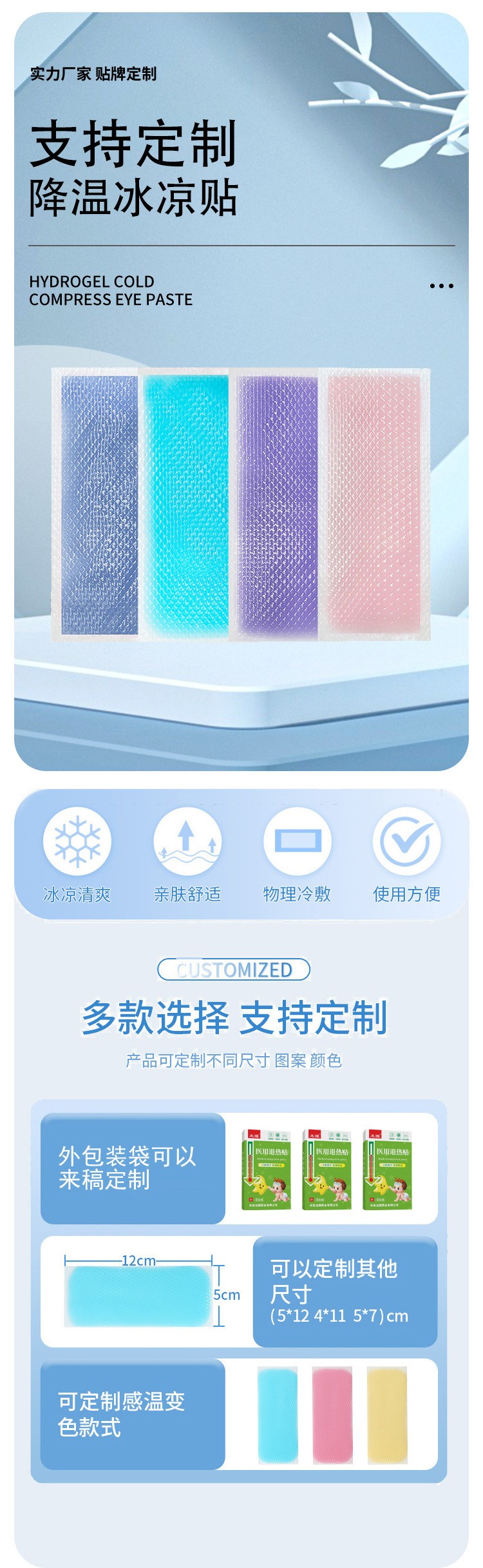 醫(yī)用退熱貼OEM貼牌 來(lái)樣定制 來(lái)料加工產(chǎn)品說(shuō)明:
