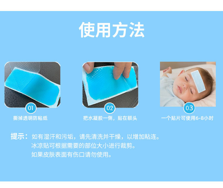 醫(yī)用兒童退熱退熱貼成人發(fā)燒物理降溫寶寶高燒冷敷寶貼(成品貼)產(chǎn)品說(shuō)明: