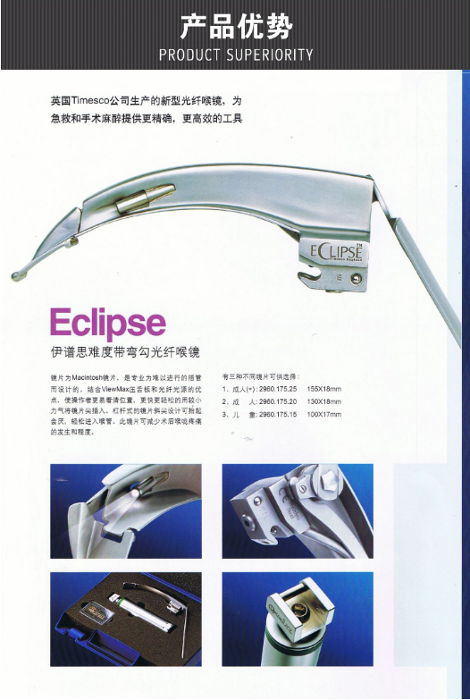 泰美科喉鏡 Eclipse難度彎鉤喉鏡產(chǎn)品說明: