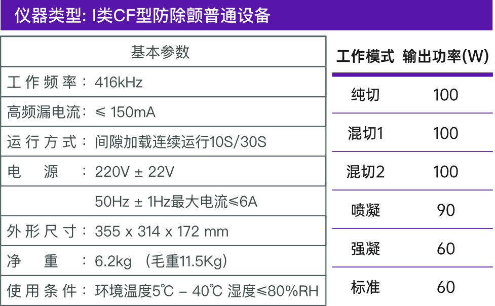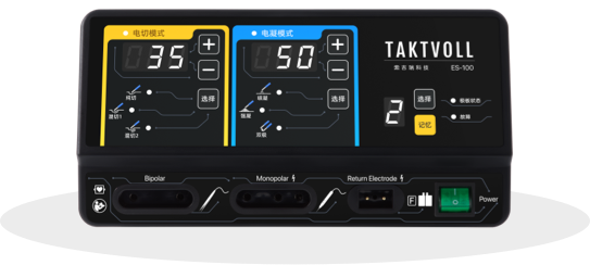 本手術(shù)設(shè)備的單極模式包含單極電切和單極電凝模式;雙極模式包含標(biāo)準(zhǔn)和精細(xì),輸出功率均可調(diào)。