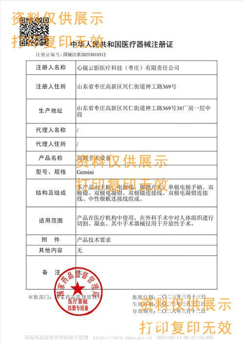• 批準(zhǔn)文號: 國械注準(zhǔn)20233010312