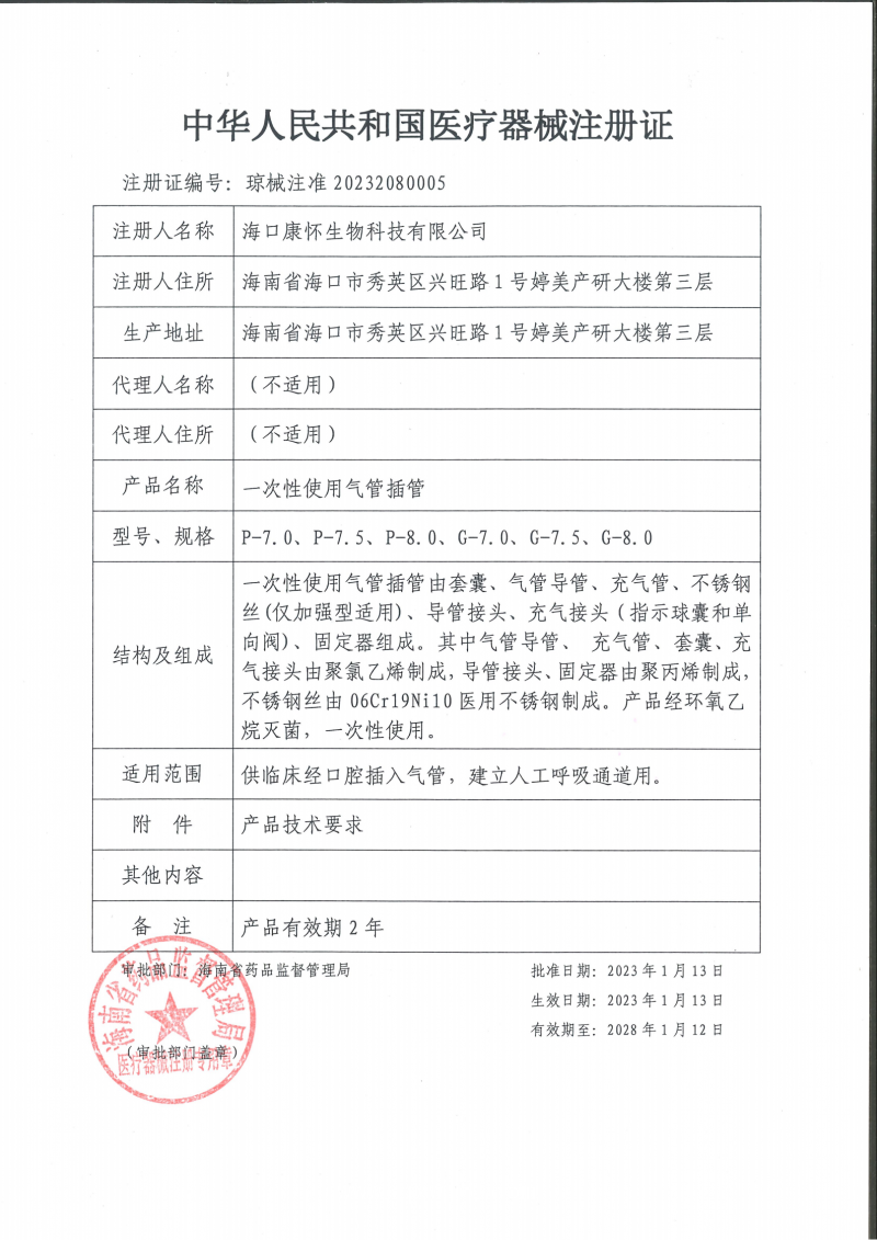 杭州嘉河醫(yī)藥科技有限公司歷經(jīng)3年和浙江省某三甲醫(yī)院合作研發(fā)雙套式氣管插管,在原有氣管插管基礎(chǔ)上,集成了固定器,固定帶,已經(jīng)獲得的注冊證編號是瓊械注準(zhǔn)20232080005,產(chǎn)品主要有利于縮短臨床搶救時間,有利于后期護理減少醫(yī)院感染,操作簡便,適合在競爭激烈的氣管插管市場搶奪份額,我們將提供優(yōu)質(zhì)的產(chǎn)品和良好的區(qū)域保護。