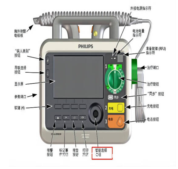 #2.8除顫能量調(diào)節(jié)采用旋鈕選擇方式,而非按鍵選擇能量,方便快捷節(jié)約搶救時間。
