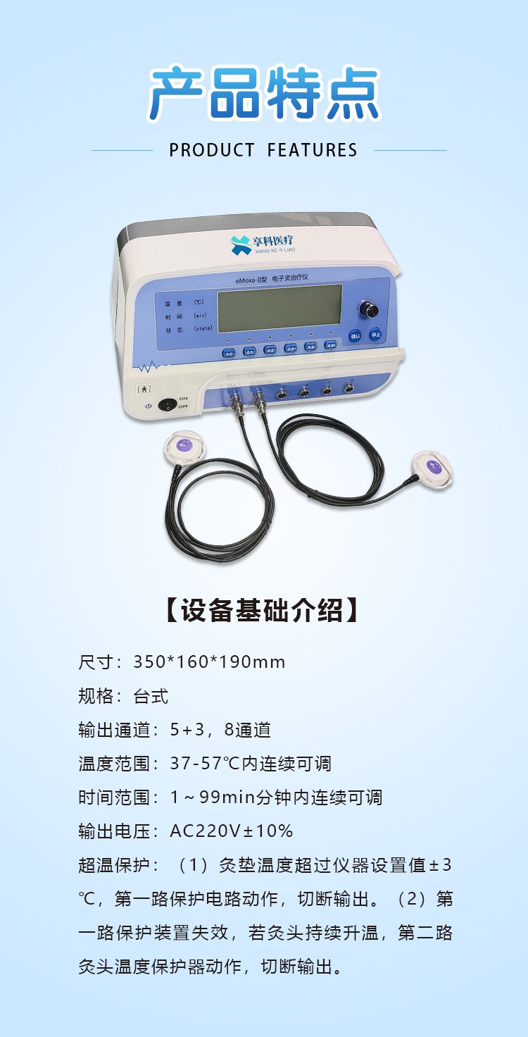 簡(jiǎn)述:臺(tái)式,消晶顯示灸療時(shí)間和溫度,負(fù)療時(shí)間采取倒計(jì)時(shí)法,結(jié)束后有指示燈和報(bào)警聲雙重提示,各通道可單獨(dú)設(shè)置純頭使用溫度、時(shí)間。