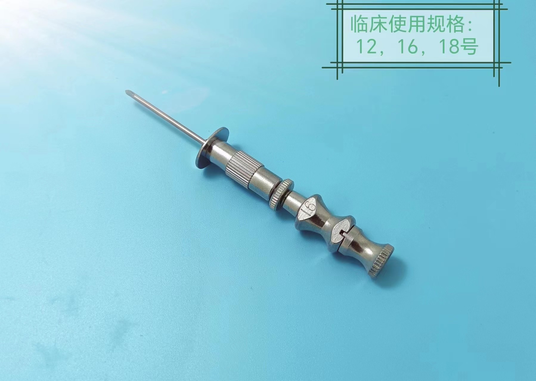 骨穿刺針,由內(nèi)針、外針、調(diào)節(jié)深度螺母組成,針尖鋒利,材料為優(yōu)質(zhì)不銹鋼,乃磨乃腐蝕。常規(guī)產(chǎn)品型號1.2、1.6、1.8,長度30、50mm,可根據(jù)要求定制。