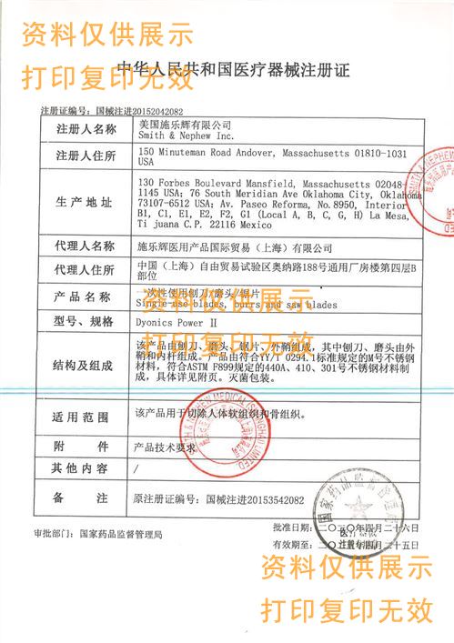 注冊(cè)人名稱:美國(guó)施樂(lè)輝有限公司Smith & Nephew Inc.