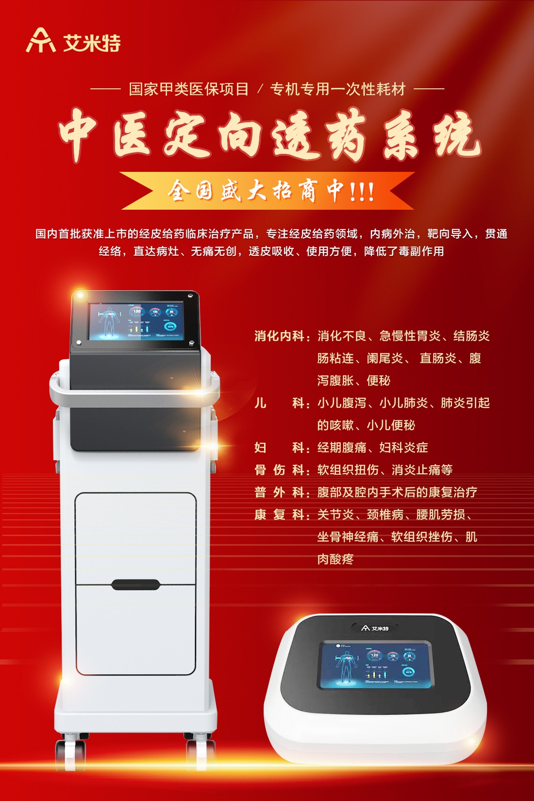 中醫(yī)定向透藥治療系統(tǒng)是以傳統(tǒng)的中醫(yī)理論為基礎(chǔ),結(jié)合人體經(jīng)絡(luò)學(xué)、現(xiàn)代生物藥物學(xué)、現(xiàn)代電磁學(xué),并在傳統(tǒng)的“中醫(yī)內(nèi)病外治法“傳承的基礎(chǔ)之上而進一步的發(fā)展,創(chuàng)新所形成的一種中醫(yī)特色綠色的治療體系。借助傳統(tǒng)的內(nèi)病外治和經(jīng)絡(luò)學(xué)原理集熱療和脈沖電等現(xiàn)代技術(shù)于一體的靶向給藥治療,可很大縮短藥物經(jīng)皮給藥遲滯時間,直接發(fā)揮藥物治療作用,透藥深度可達深層組織,使皮膚和組織對藥物的通透性大大增加,通經(jīng)絡(luò)和穴位的指引下,靶向給藥,直達病灶,藥物直接迅速到達病灶部位快速發(fā)揮治病目的。