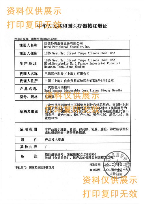 美國(guó)巴德BARD一次性使用活檢針MN1413產(chǎn)品說明: